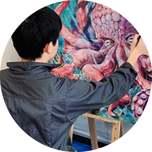 動物の生態や特性を絵の中で変化させたり加えたりしながら、動物のもつイメージや象徴を絵に表すことをコンセプトとして絵画を制作しています。
